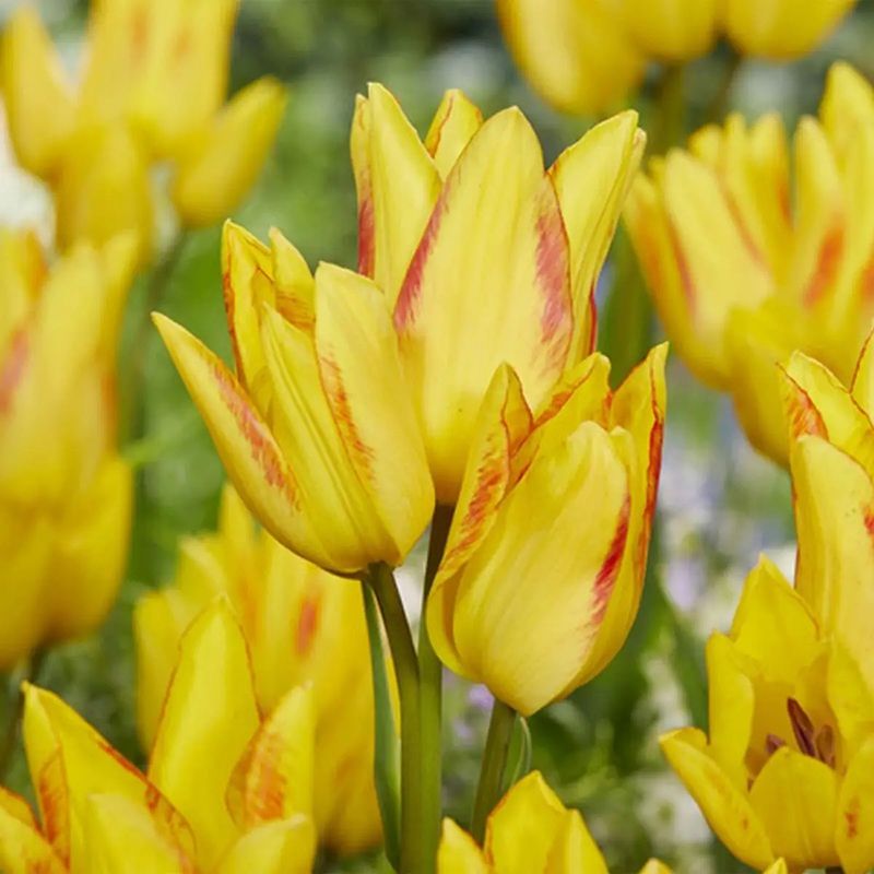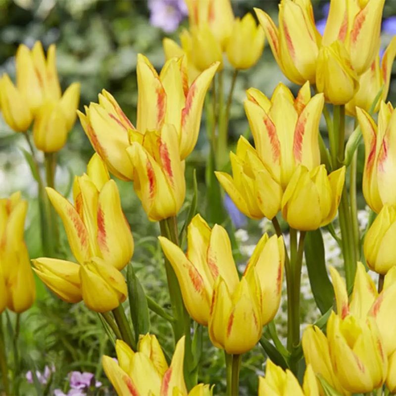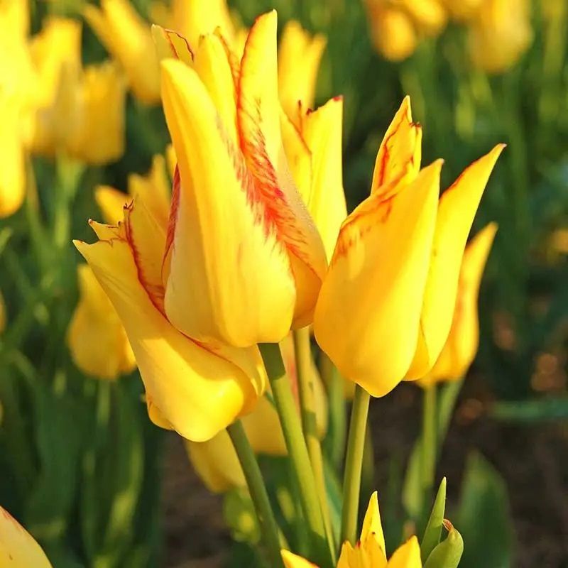 Растение формирует от двух до шести бутонов, которые имеют насыщенный желтый цвет с красноватыми прожилками по краю лепестка.