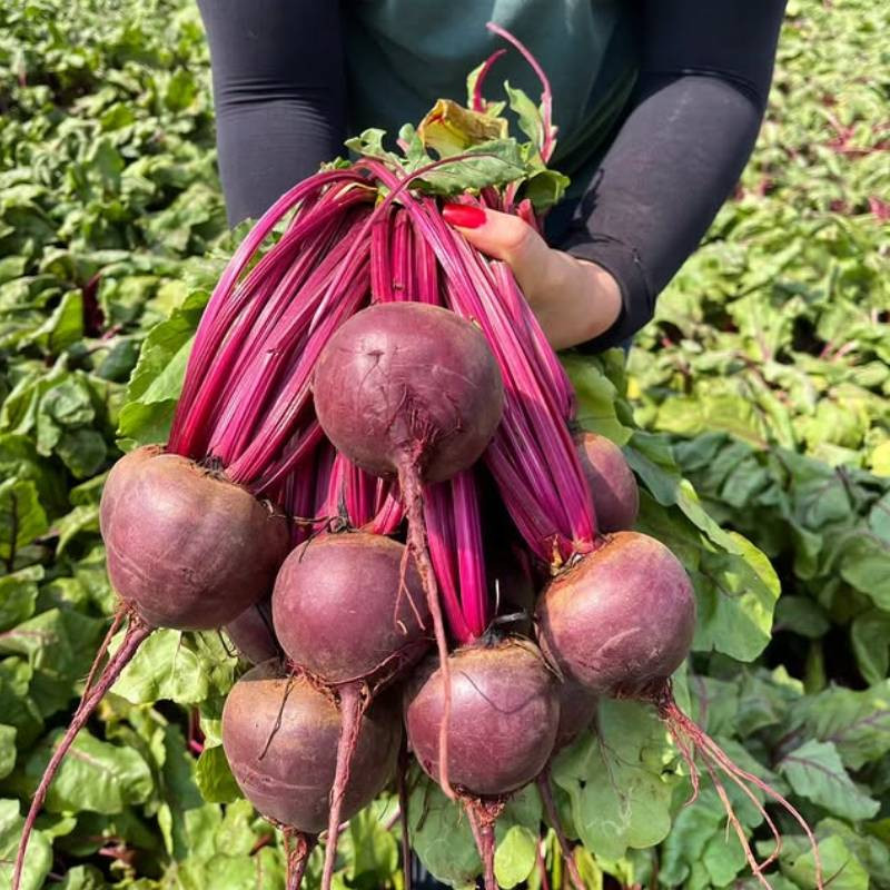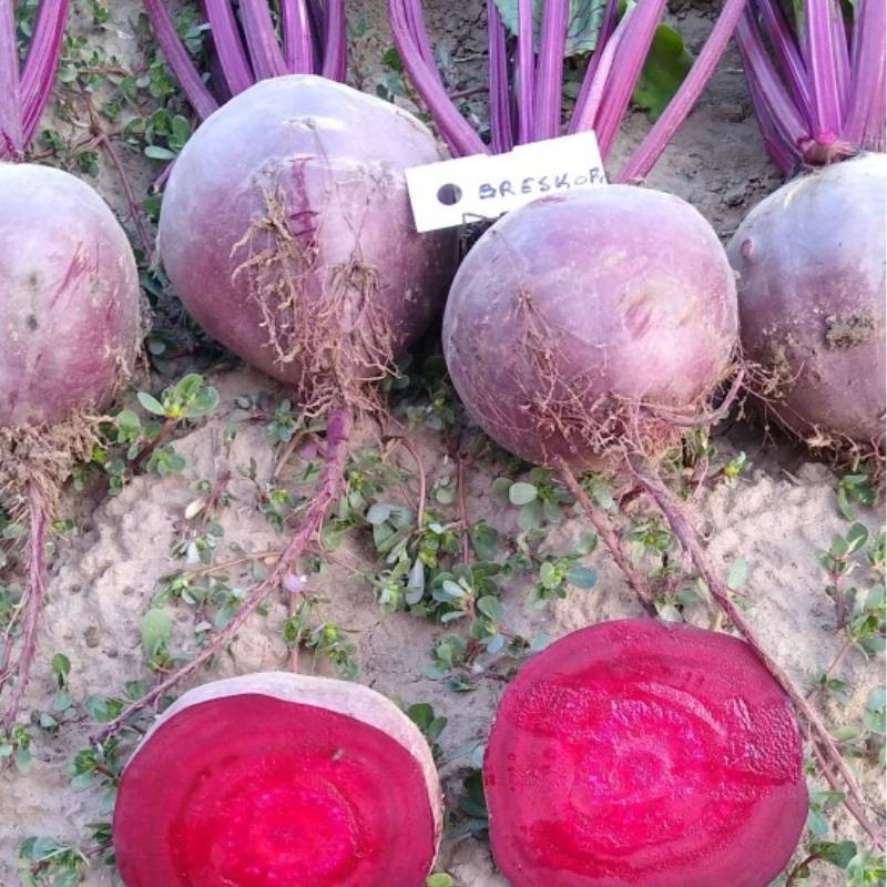 Характеристика плодов – Корнеплод округлый, среднего размера, красно-фиолетового окраса, гладкий, мякоть фиолетовая. Масса корнеплода 150-200 г. Вкусовые качества отличные. Brix – 9,6%.