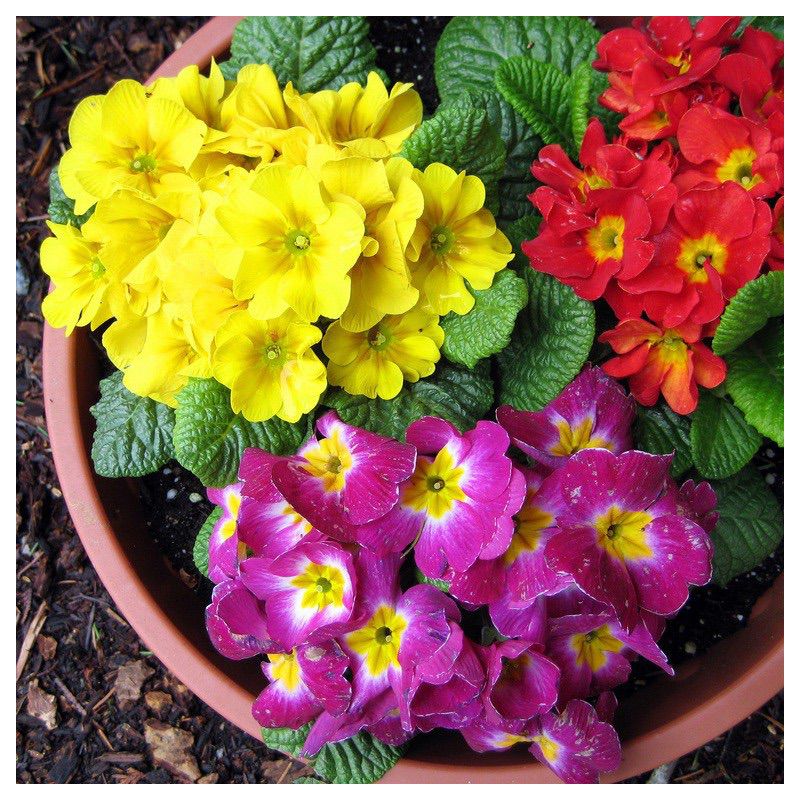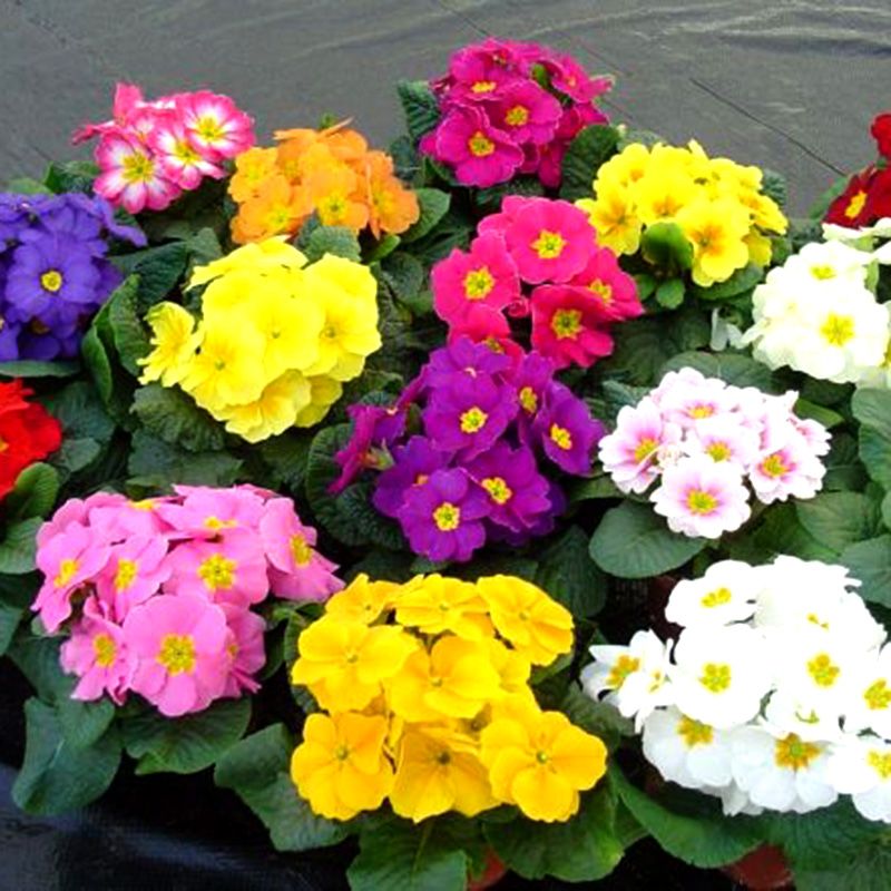 Примула Пионер F1 смесь (Primula acaulis Pioneer F1 mix) – раннецветущая компактная серия.