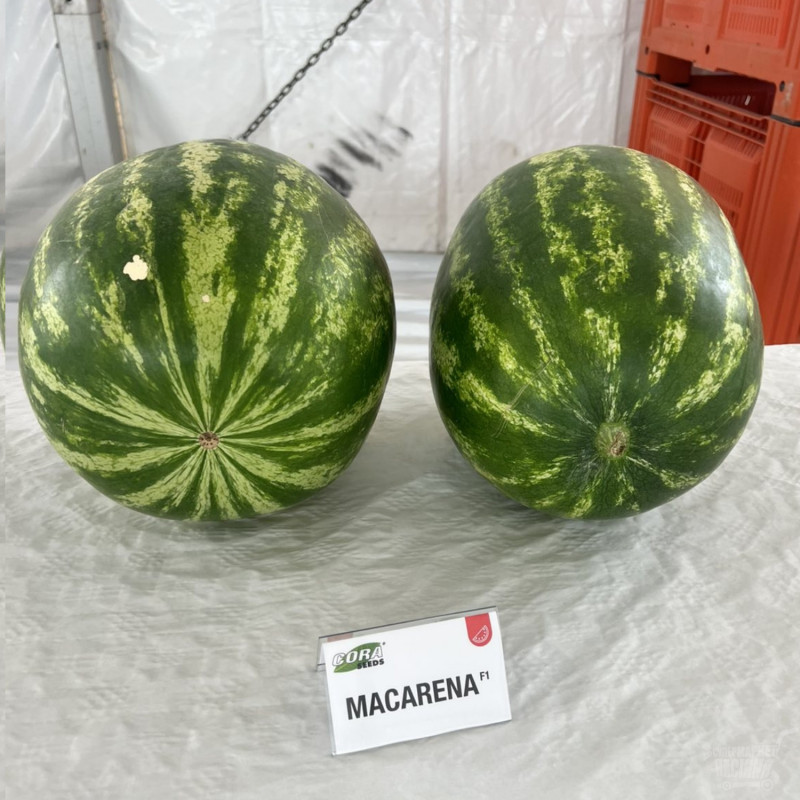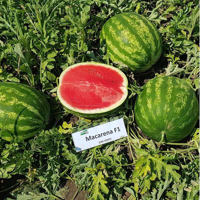 Характеристика плодов – Плоды округлой формы с ярко-красной мякотью, очень сладкие. Размер плода: 9-12 кг. Улучшенная мякоть, а именно цвет имеет окраску double red (более красный), мелкие семена, отсутствие Hollow Heart даже при сложных условиях выращивания (полостей, растрескивание в мякоти), отсутствие FIBER-FREE (волокон в мякоти).