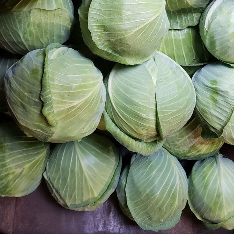 Характеристика плодов – Головка весом 2-3 кг, округло-овальная, темно-зеленого цвета. Имеет жесткий лист, поэтому может храниться более 6 месяцев. Есть восковый налет, который защищает её от вредителей (трипс, тля). Очень выровненные головки. Отличный вкус.