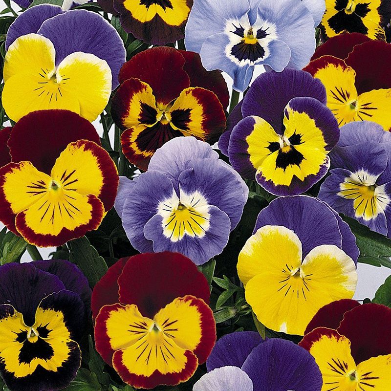 Виола виттрока Джокер F1 смесь (Viola wittrockiana Joker F1 mix) – куст компактный, высотой 10-15 см, шириной 15-20 см.