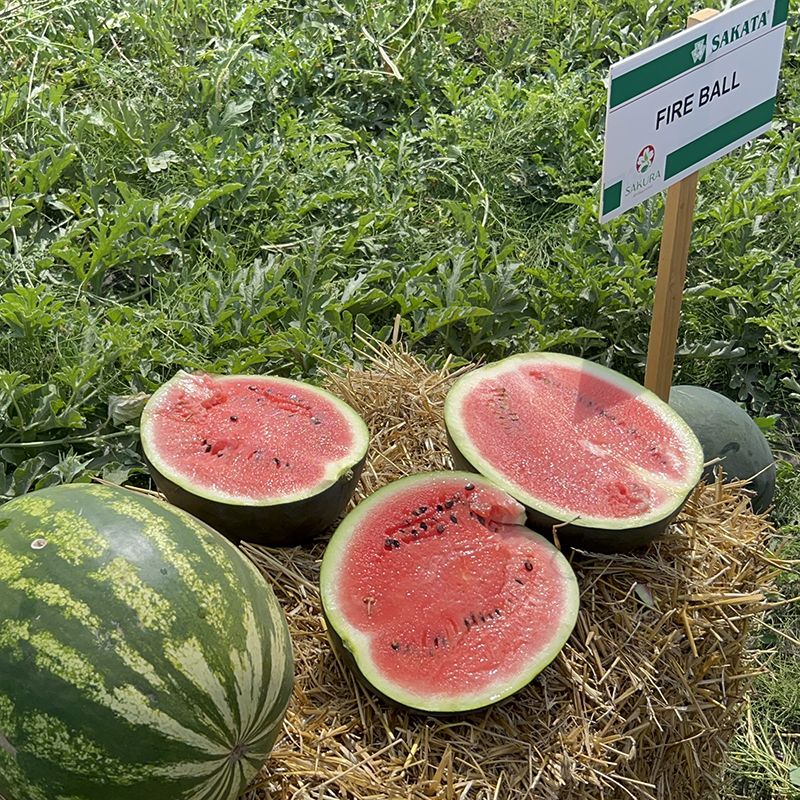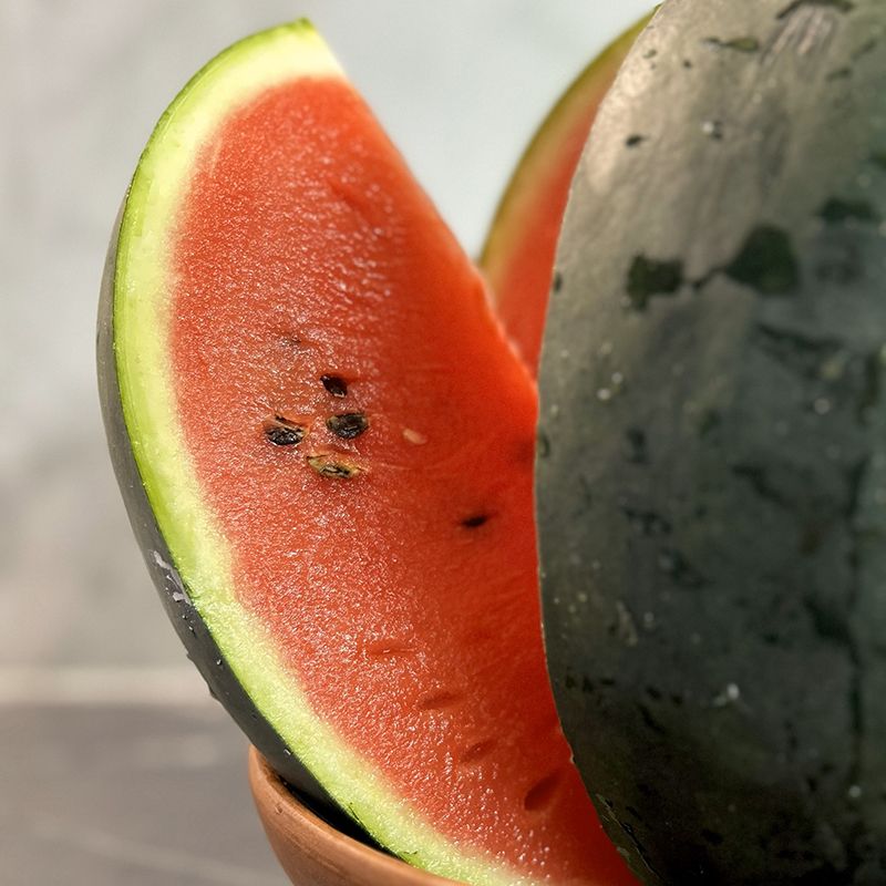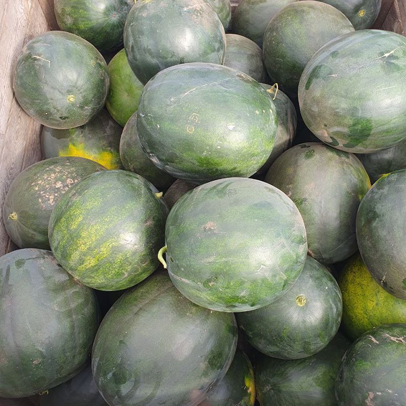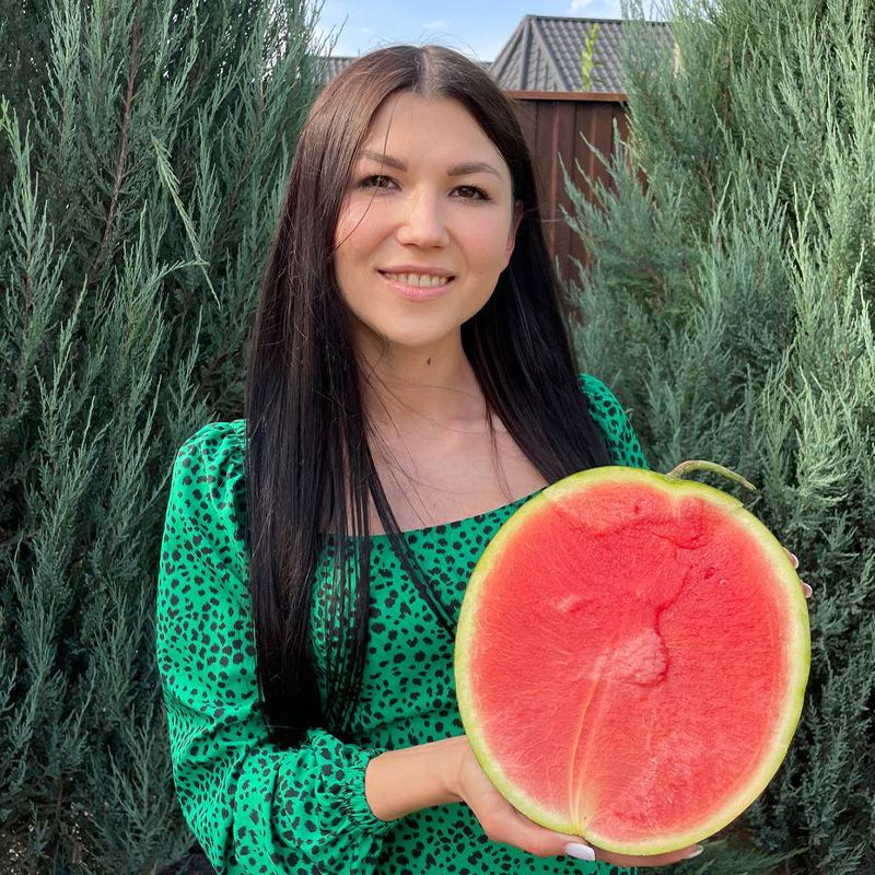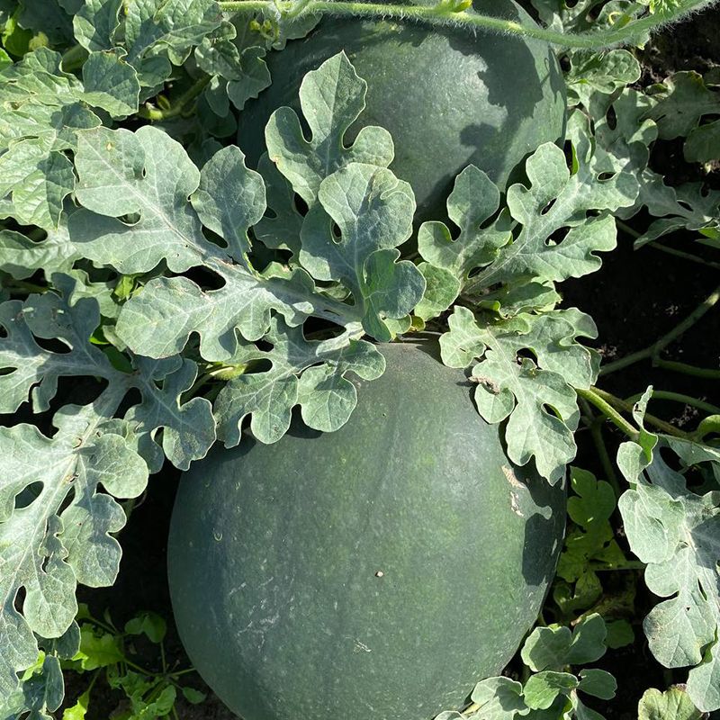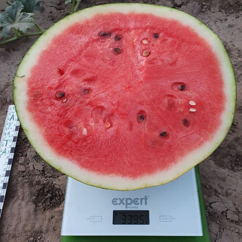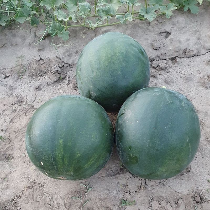 Характеристика плодов – Плоды обладают округлой формой и замечательным товарным видом, темно-зеленой кожурой. Мякоть насыщенно-красного цвета, шкурка довольно плотная и хрустящая. Средняя масса плода: 6-9 кг.