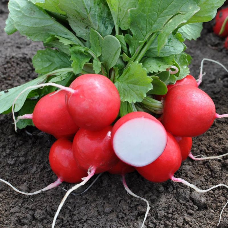Характеристика плодов – Корнеплоды однородные, ярко-красного цвета, округлой формы с белой внутренней структурой. Корешок тонкий и короткий.