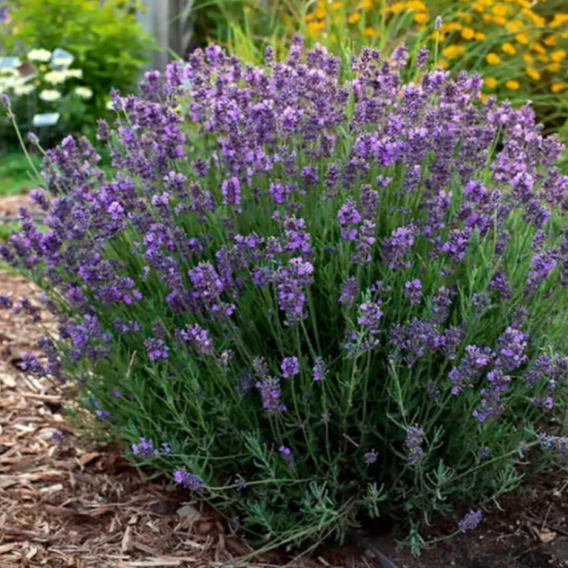 Лаванда Хидкоут (Lavandula angustifolia Hidcote) – вечнозеленый кустообразующий многолетник с фиолетово-синими цветами над серо-зелеными листьями.