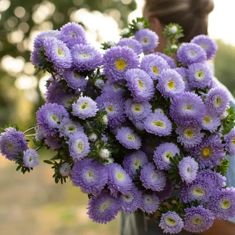 Астра Арлекин бело-розовая помпонавидная (Callistephus chinensis Harlekin) – букетная серия для среза.