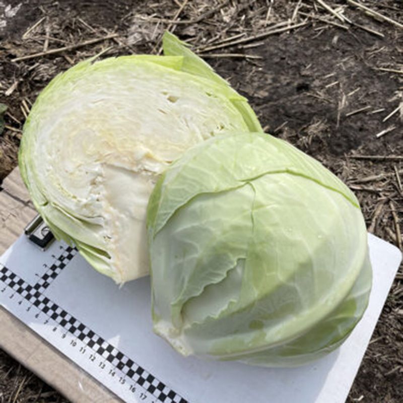 Характеристика плодов – Головки округлые, зеленого цвета, очень плотные, выровненные, красивого товарного вида. При созревании головки белые. Масса головки – 2,5-3 кг.