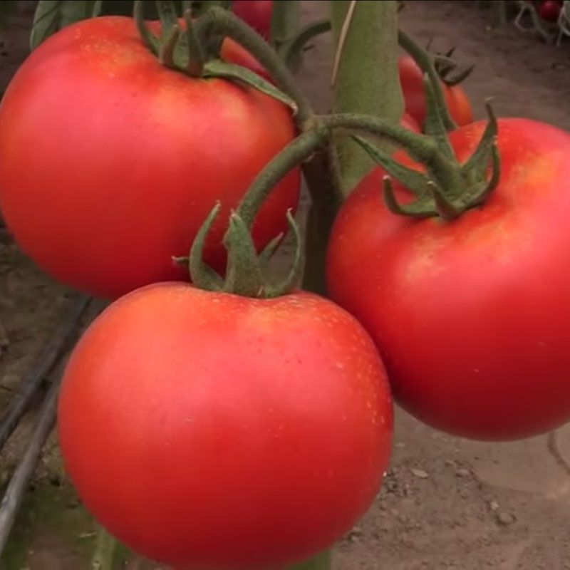 Формирует очень красивые томаты, с блестящей кожицей, ярко-красной окраски. Имеют плоскоокруглую форму, мякоть плотная и вкусная.