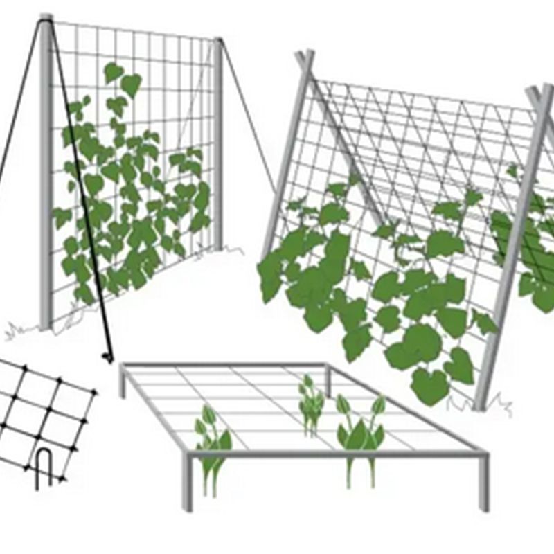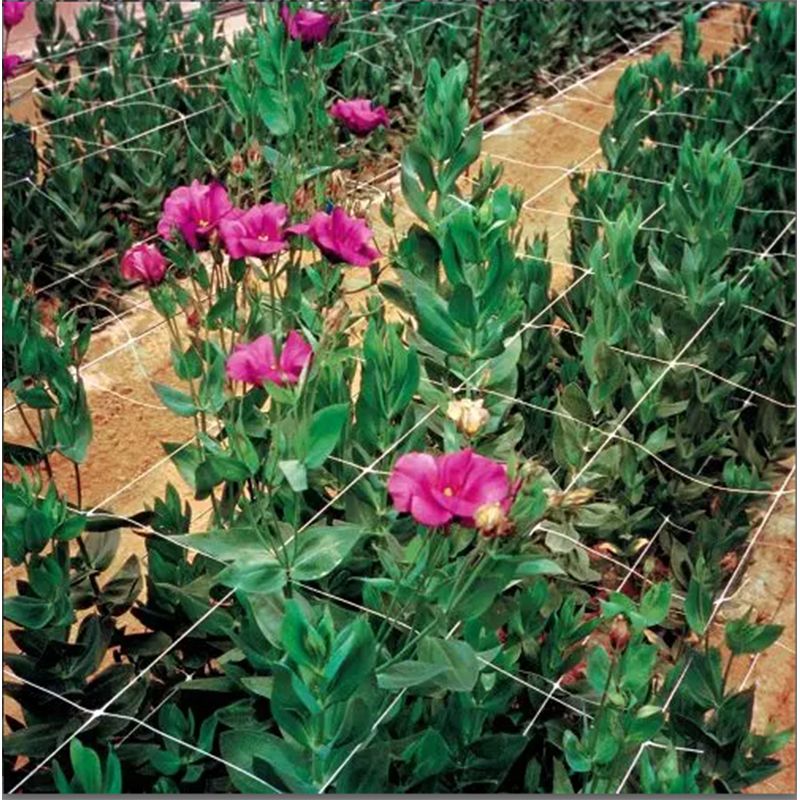 Рекомендации по установке: Для цветов сетку натягивают горизонтально и присоединяют к поперечным кольям на концах, и к промежуточным стойкам, расположенным по бокам зоны и находящимся в 2-5 метрах один от другого, в зависимости от вида выращивания. В зависимости от фазы роста, в дальнейшем рекомендуется продолжать натягивать сетку горизонтально, формируя ярусы. Для овощных культур сетку натягивают вертикально, прикрепляя к стойкам, что располагаются вдоль культивационной шпалеры. Расстояние между стойками исходит от способа выращивания. Немного приподнятая над почвой, сетка дает растению зафиксироваться и потом расти вверх вдоль нитей сетки.