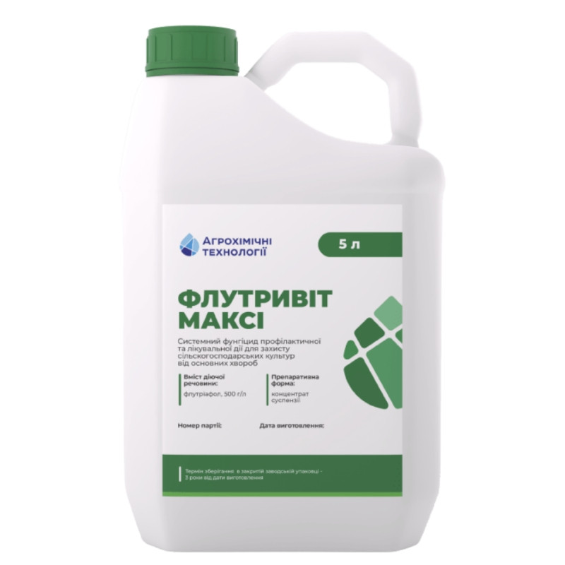 Фунгицид Флутривит Макс – системно-контактный фунгицид профилактического и лечебного действия с вдвое более высокой концентрацией действующего вещества. Работает при низких температурах воздуха от +6°С.