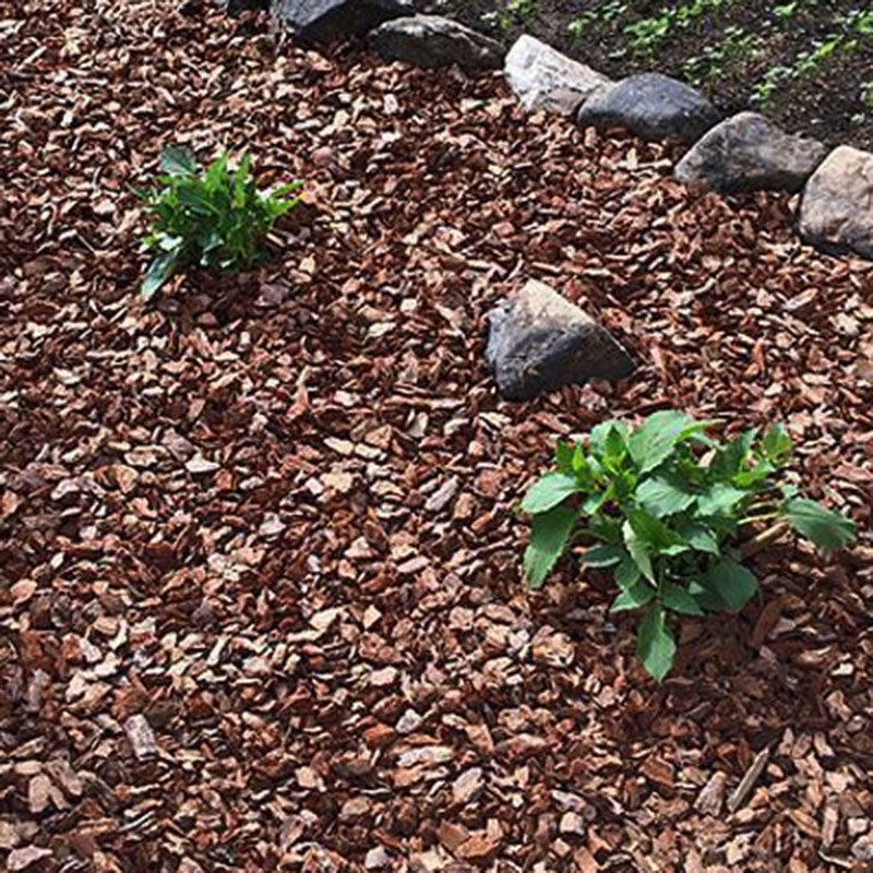 Кора сосновая имеет прекрасный декоративный вид, благодаря чему активно применяется в ландшафтном дизайне.