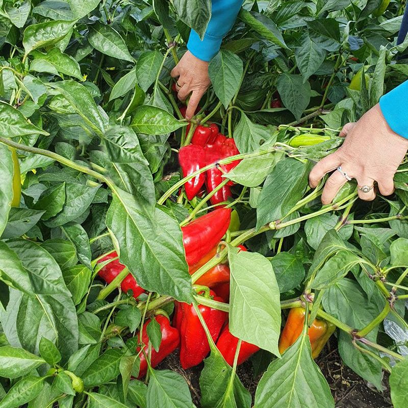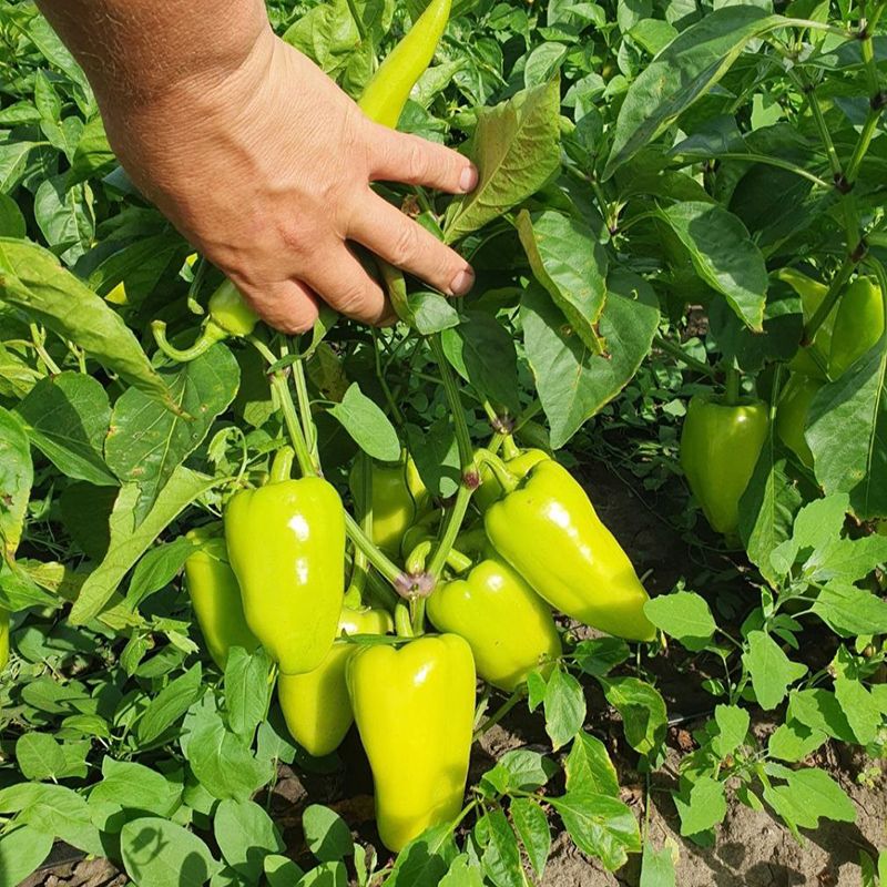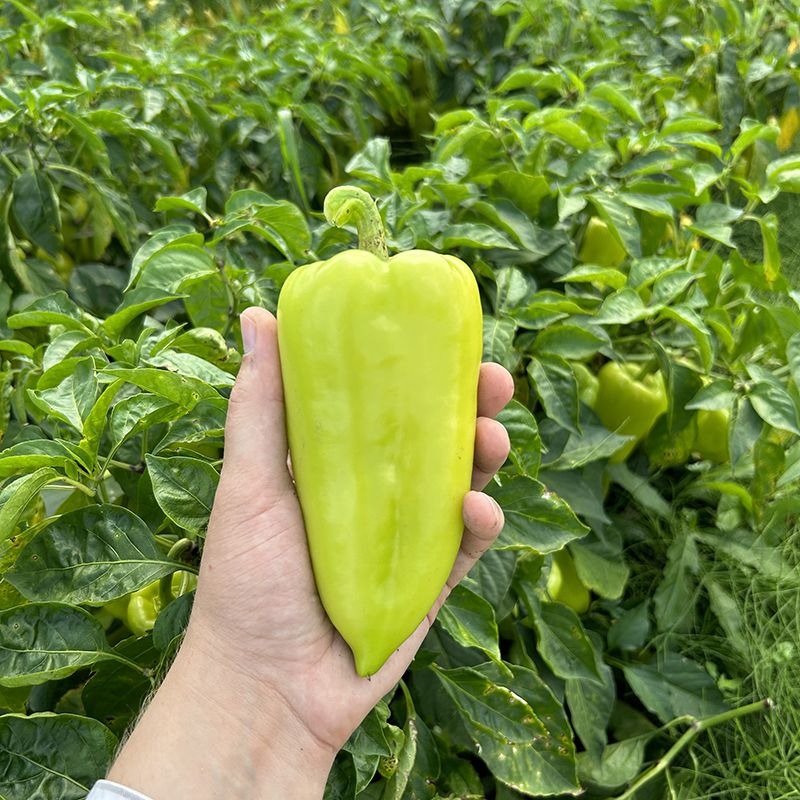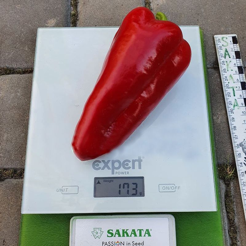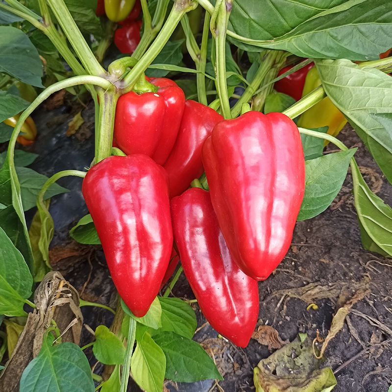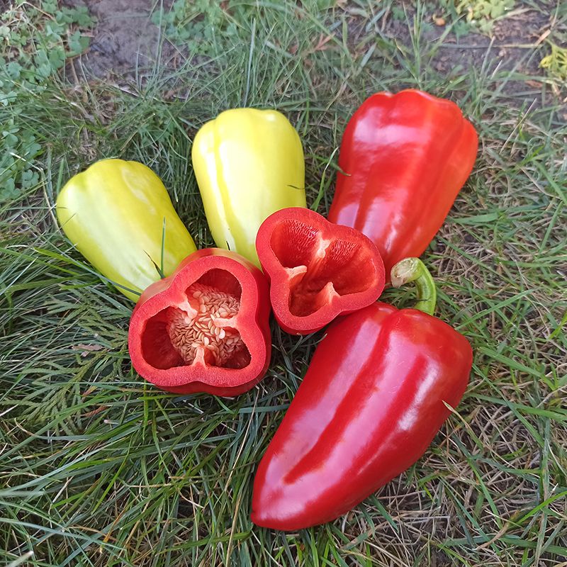 Характеристика плодов – Плоды конической формы, весом 150-180 г, размер 7-8х11 см. Качественный плод с толстой стенкой – 6,5 мм. Плоды в технической спелости светло-зеленого цвета, в биологической – насыщенно-красного цвета.