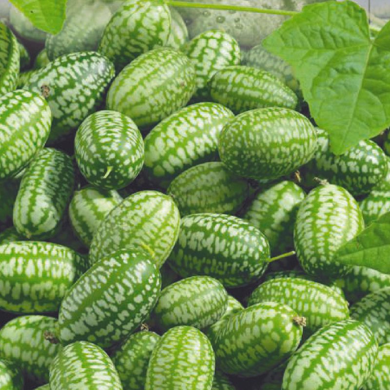 Характеристика плода – С одного куста можно собрать до 6 кг плодов. Плоды овальной формы, длиной около 4 см, похожи на арбуз: зеленая кожура покрыта полосками и пятнами. Вкус похож на обычный огурец, но при этом с привкусом дыни и легкой кислинкой.