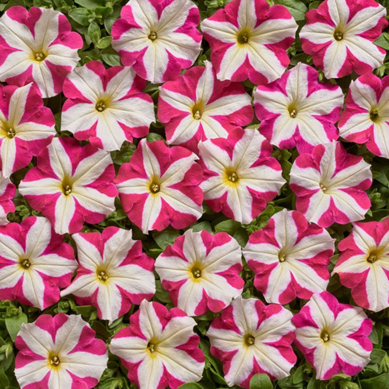 Петуния мультифлора Белинда F1 розовая с прожилками (Petunia multiflora nana Belinda F1 rose and white star) – многоцветковый, низкорослый, устойчивый к неблагоприятным погодным условиям гибрид.