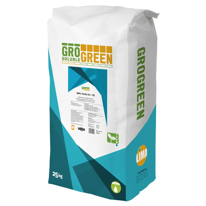 Удобрение НПК (NPK) 10-52-10+TE водорастворимое GroGreen – удобрение для овощей, фруктов, цветов, технических и зерновых культур.