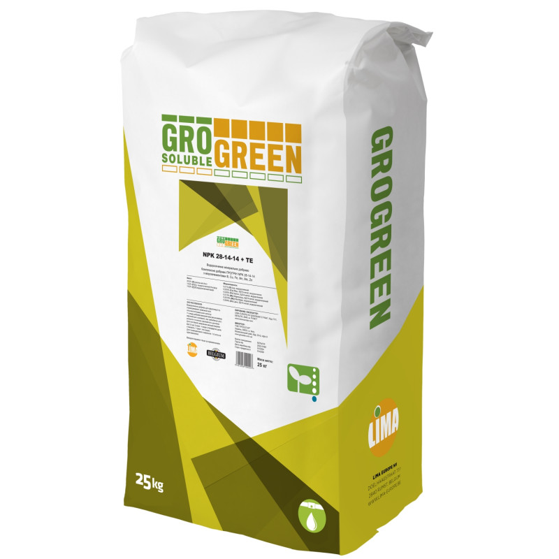 Удобрение НПК (NPK) 28-14-14+TE водорастворимое – комплексное водорастворимое удобрение для фертигации и листовых обработок от компании GroGreen.