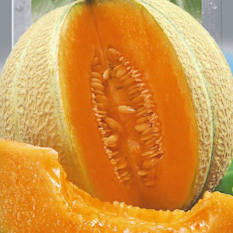 Характеристика плода – Плоды овальные или овально-округлые, небольшие (1-1,2 кг), от кремово-желтых до серо-зеленых, с большим сетчатым рисунком. Мякоть очень вкусная, ароматная, сочная и толстая (4-5 см), оранжевого цвета. Изюминка гибрида – оранжевая, очень сочная и ароматная мякоть.