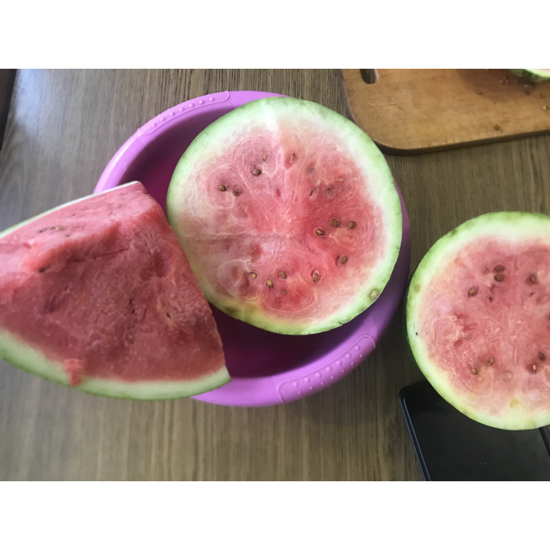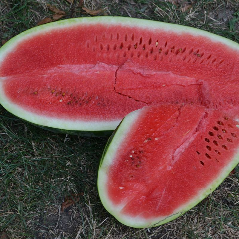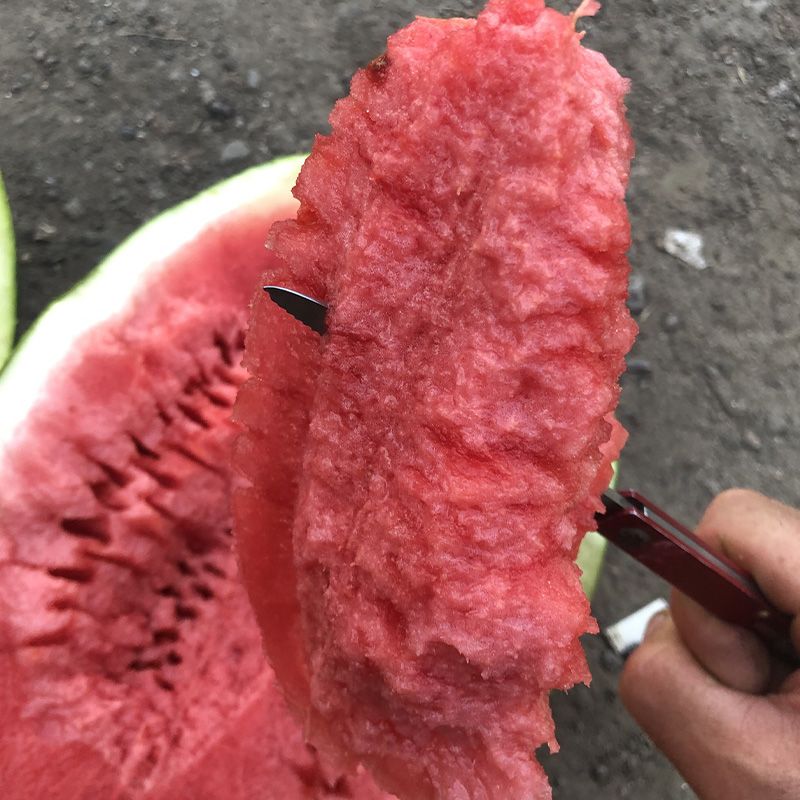 Мякоть имеет ярко красный цвет, сладкая на вкус.