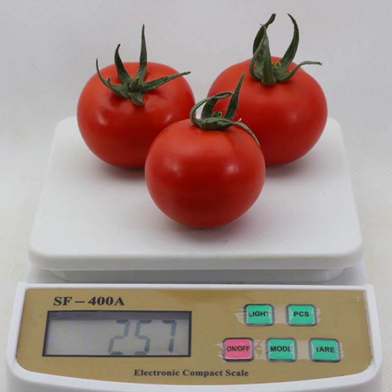 Характеристика плодов – Хорошие однородные плоды округлой формы. Цвет плода: красный. Средняя масса плода: 100–120 г. На кисти 5-8 однородных товарных плодов.