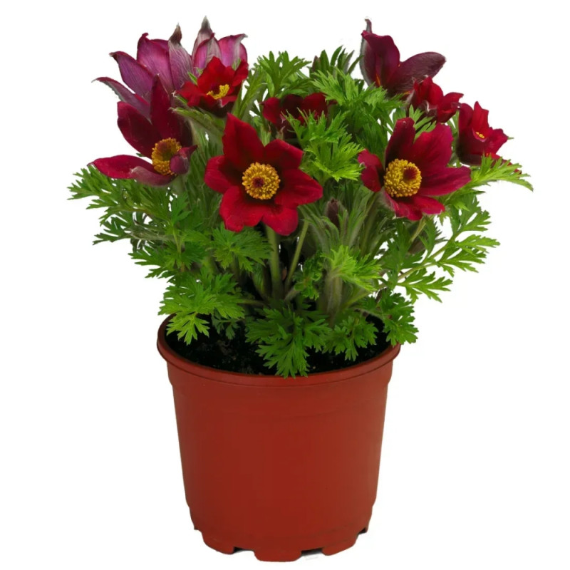 Сон-трава Пинвил красная (Pulsatilla vulgaris Pinwheel red) – многолетнее растение с красными цветами.