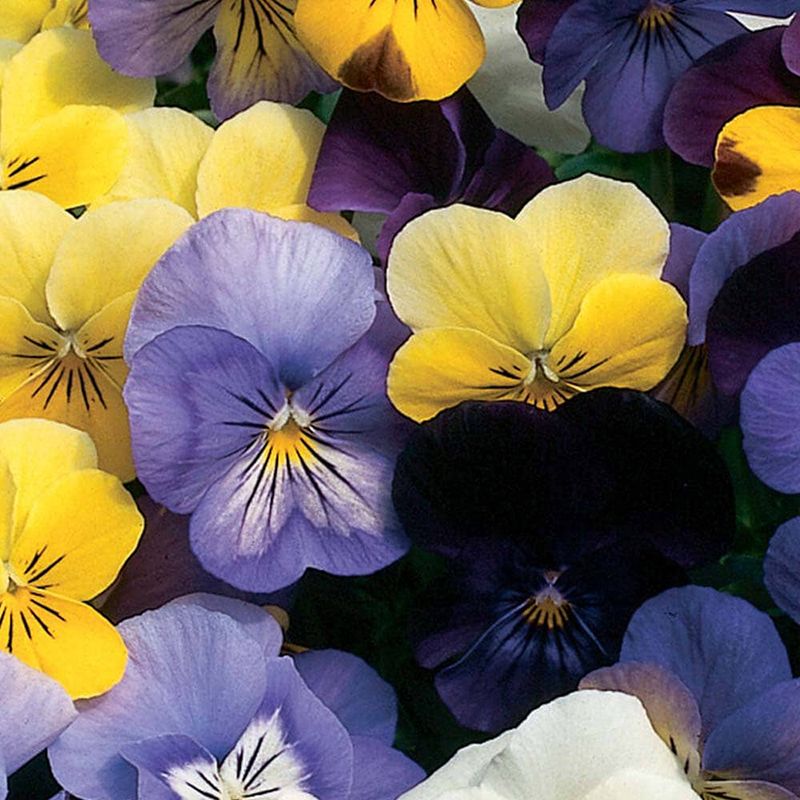Виола Микс крупноцветная (Viola Largeflowered mix) – великолепное сочетание негибридных одноцветных и разноцветных цветов.