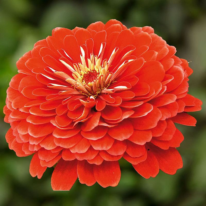 Цинния Дейлиа ярко-красная (Zinnia elegans Dahlia Bright Red) – высокорослое однолетнее растение с ярко-красными крупными цветами с множеством лепестков.
