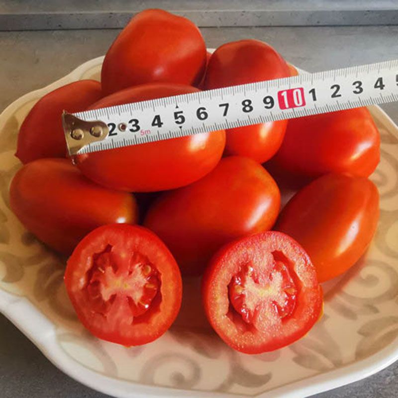 Характеристика плодов – Томат со сливообразными плодами красного цвета. Плоды не имеют зеленого пятна у плодоножки. Вес плода – 100-125 г.