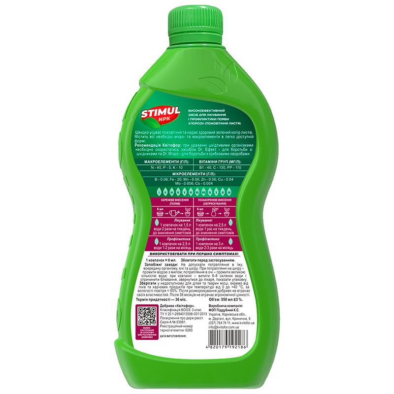 Удобрение Стимул от хлороза быстро устраняет пожелтение и придает здоровый зеленый цвет листьям. Содержит все необходимые микро- и макроэлементы в легко доступной форме.