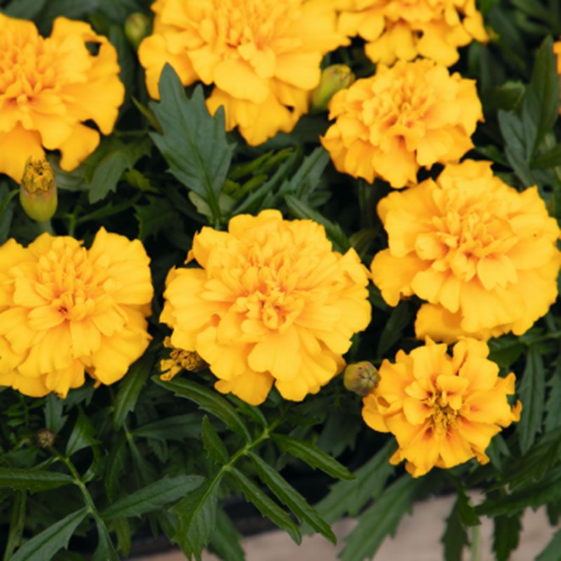Бархатцы раскидистые Супергерой золотисто-желтые (Tagetes patula Super Hero Gold) – очень компактная и выровненная серия.