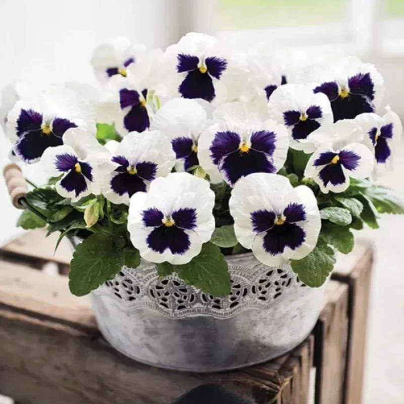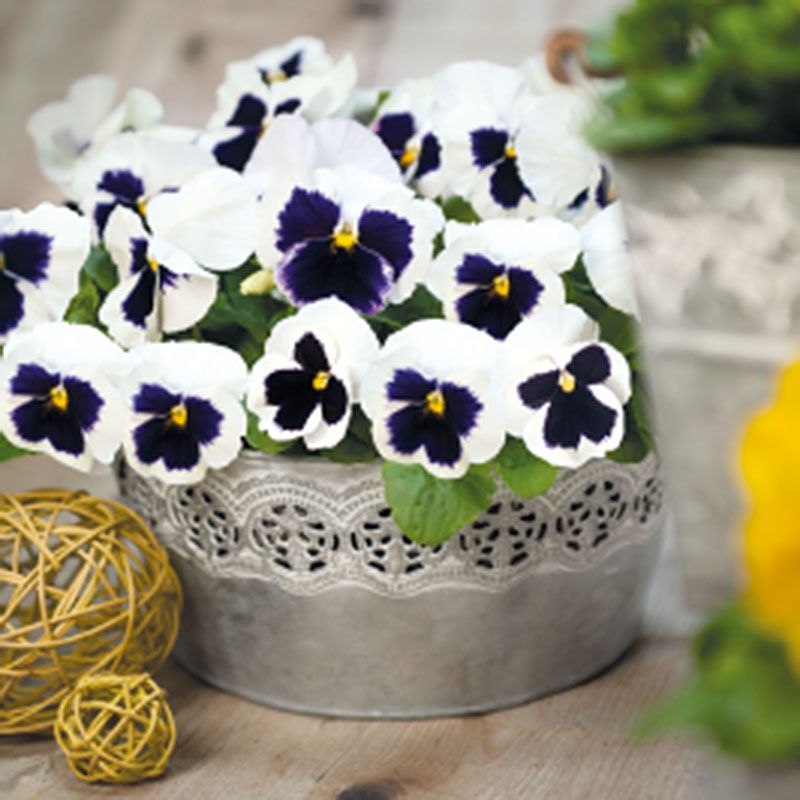 Виола Инспаер Делюкс F1 белая с глазком (Viola wittrockiana Inspire DeluXXe F1 White Blotch) – лучшая серия XL на рынке, которая идеально подходит для выращивания в конце лета и начале осени.