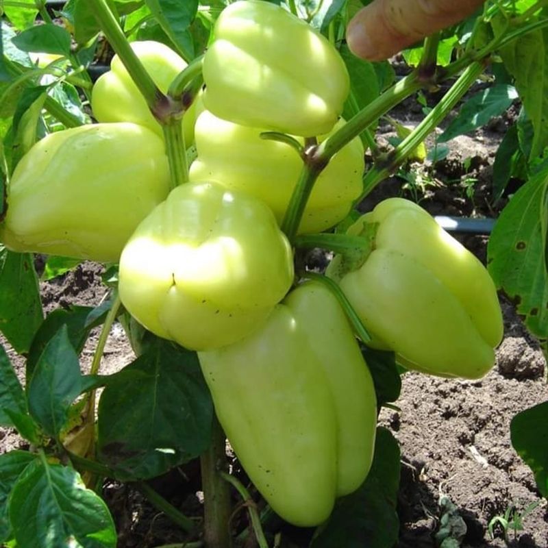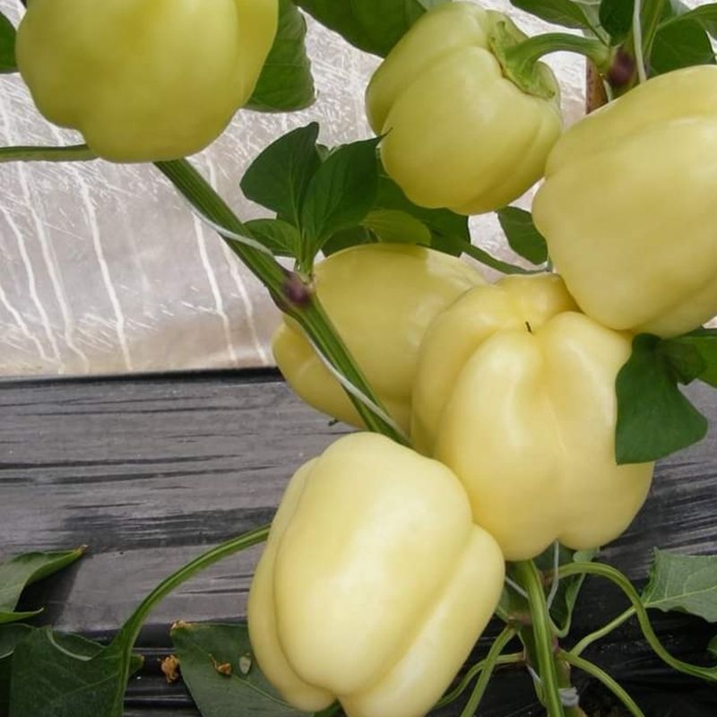 Характеристика плодов – Вкусные ярко-кремовые плоды с отличной транспортабельностью. Цвет в техническом созревании – зеленый, в биологическом созревании – светло-желтый. Вес плода – 150-200 г. Длина плода – 11 см. Диаметр – 8 см. Форма – округло-блочная. Толстостенный, одинаковый по размеру. Толщина стены – 4-5 мм.