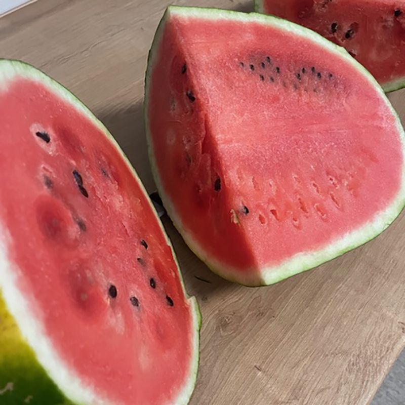 Характеристика плодов – Плоды удлиненной формы, весом 10-12 кг. Мякоть алая. Вкуснее Юмми.