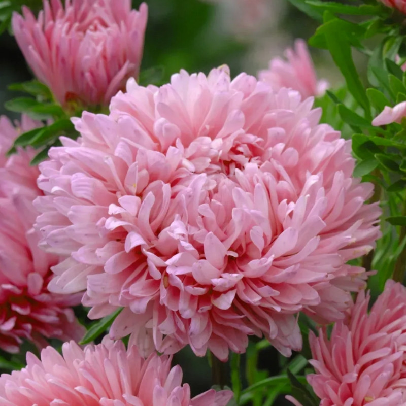 Астра Аполлония лососево-розовая – это новая серия хризантемообразных астр, которая пленяет своими яркими и большими цветами.