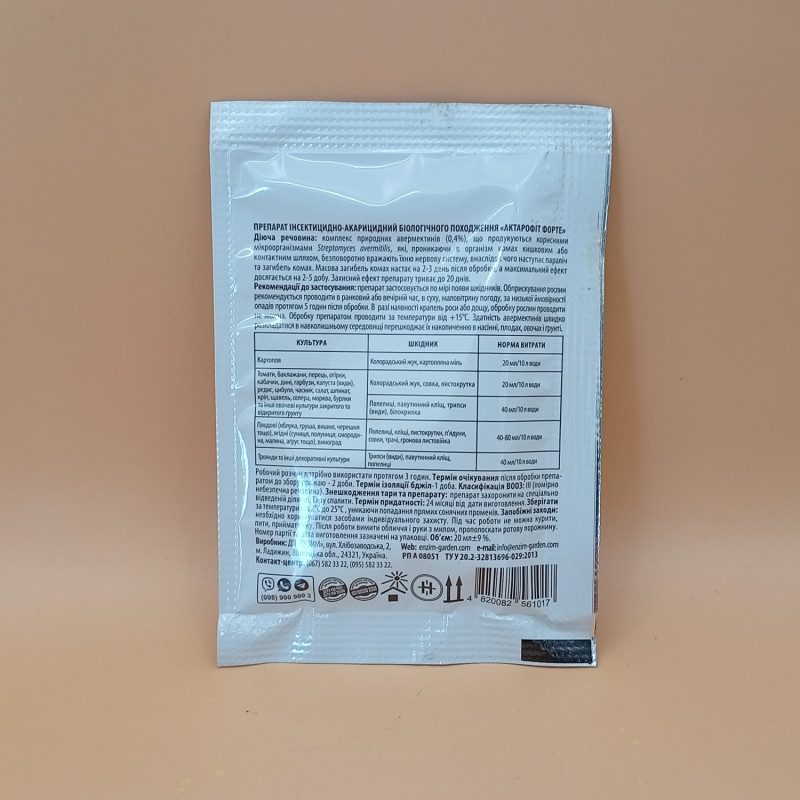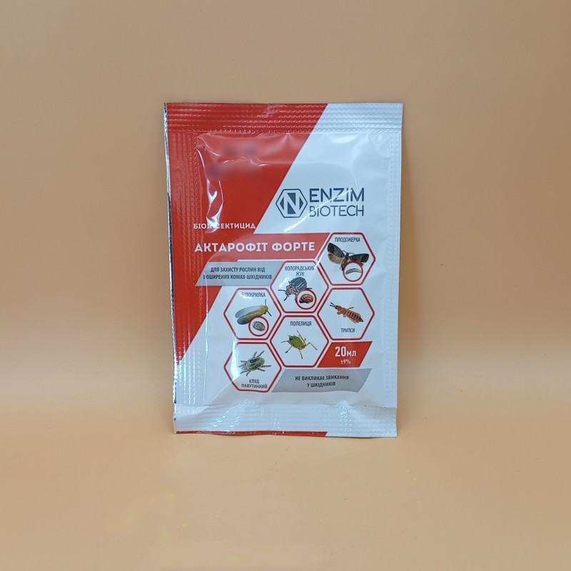 Инсектицид-акарицид био Актарофит Форте – это препарат, созданный на основе комплекса природных авермектинов, продуцируемых полезным почвенным грибком Streptomyces avermitilis.