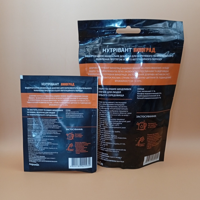 Удобрение Нутривант Виноград не смешивать с препаратами, содержащими железо, алюминий или высокие концентрации кальция.