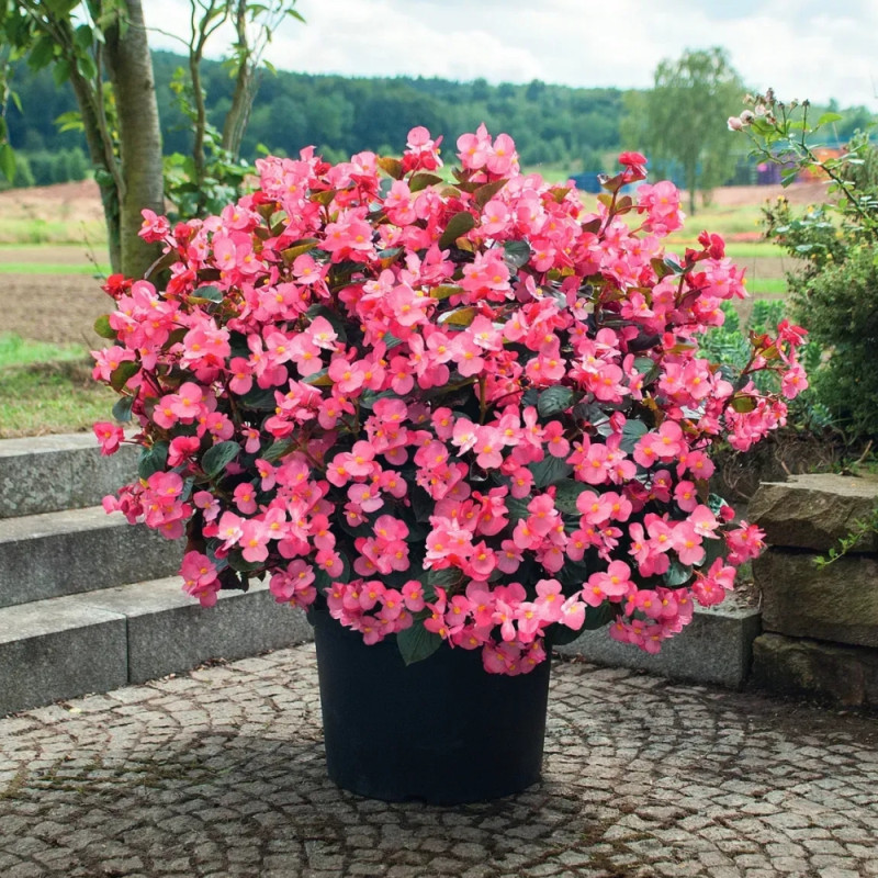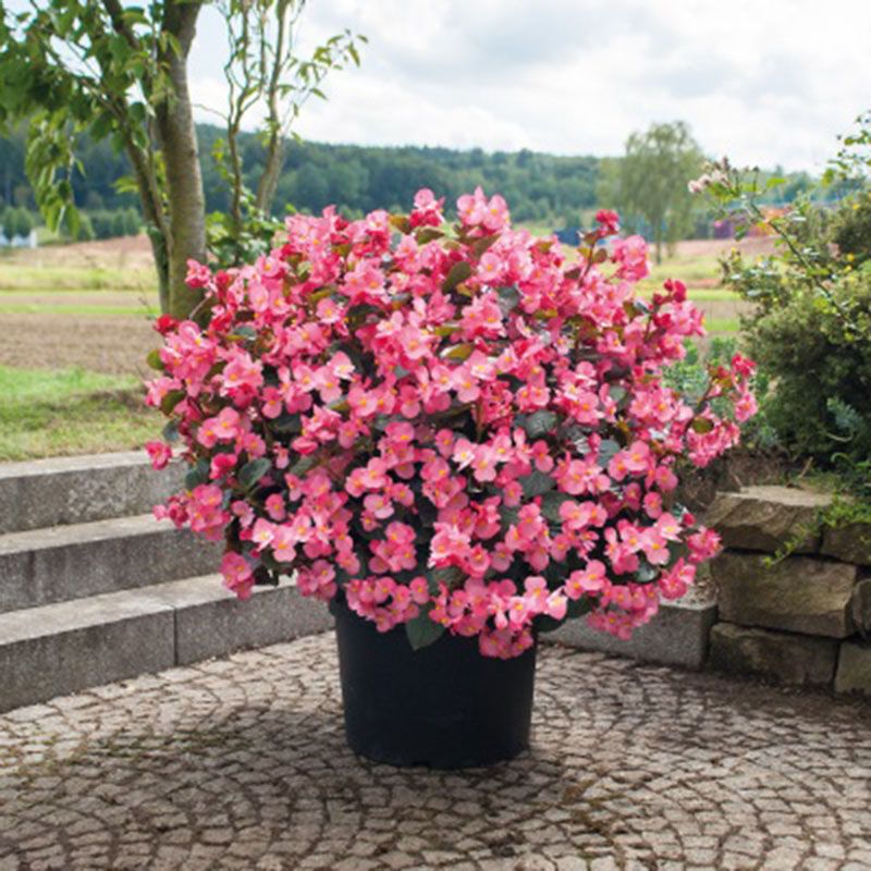 Бегония Биг Делюкс F1 розовая с бронзовым листом (Begonia x benariensis BIG DeluXXe F1 Rose Bronze Leaf) – цветок, который используется для больших горшков, подвесных корзин, смешанной тары и больших насаждений.