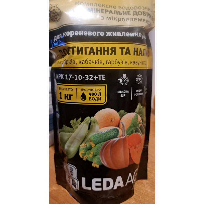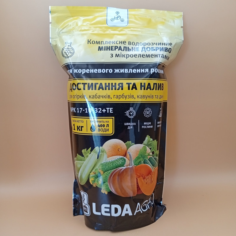 Удобрение Созревание и налив плодов (бахчевые) NPK 17-10-32+ТО водорастворимое – это комплексное водорастворимое NPK-удобрение с высоким содержанием калия. Способствует созреванию и наливу для огурцов, кабачков, тыквы, арбузов и дынь.