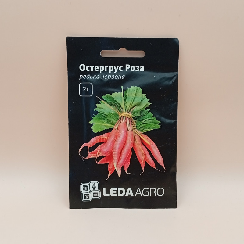 Характеристика плода – Редька Остергрус Роза имеет длинный корнеплод, длиной до 20 см, с красивым блестящим темно-розовым цветом. Его мякоть белая, с очень тонким вкусом.
