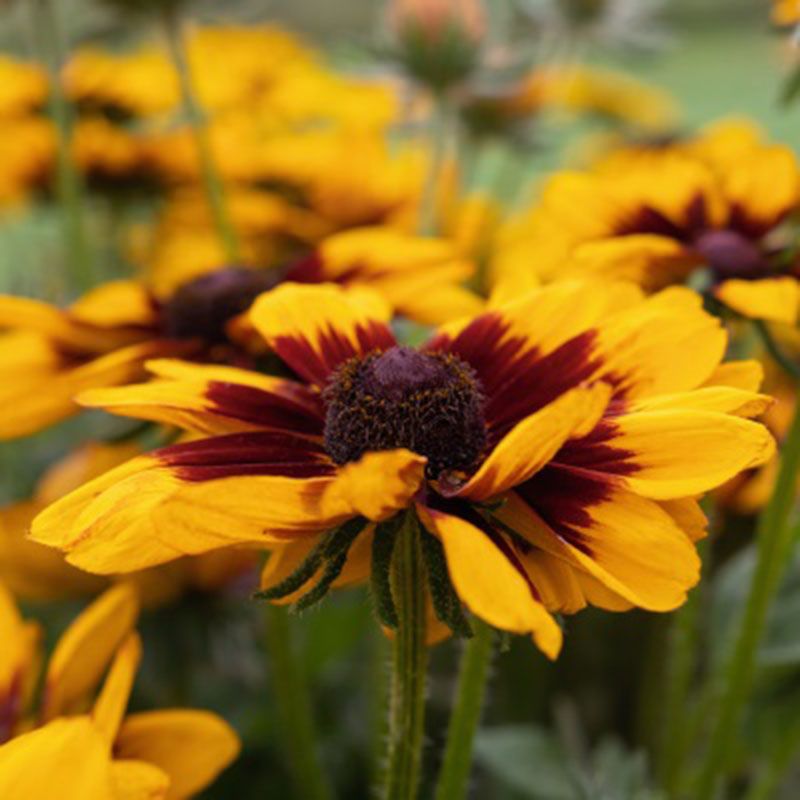 Рудбекия Пони Спирит (Rudbeckia hirta Pawnee Spirit) – компактное селекционированное на основе рудбекии Денвер Дейзи растение.