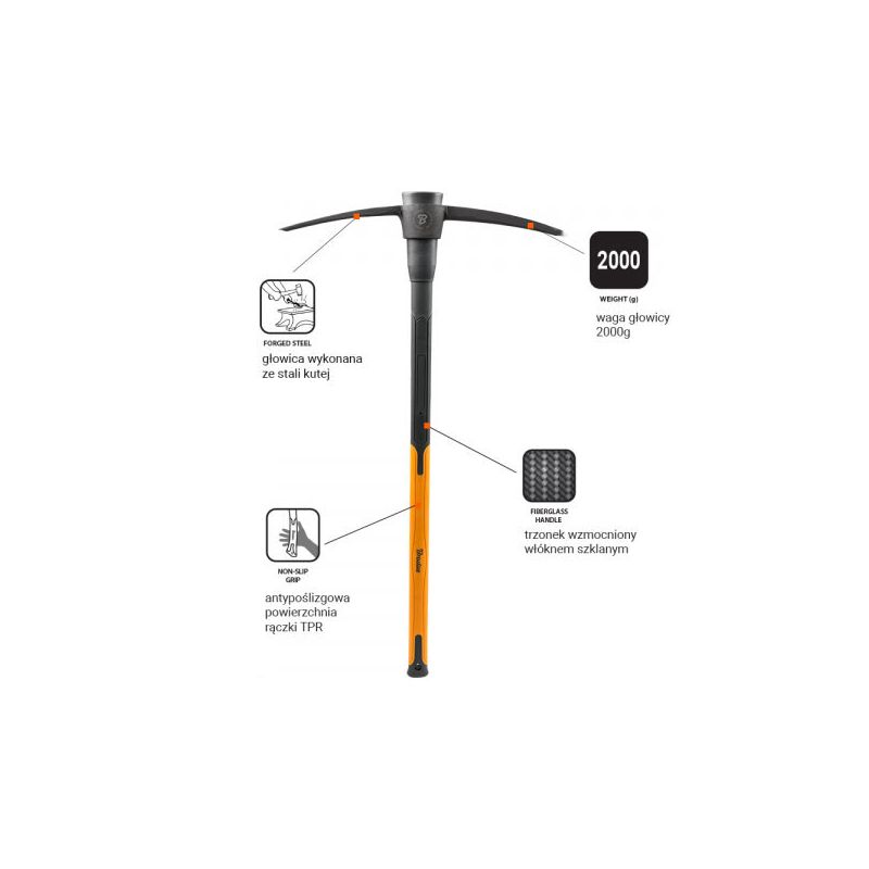 Кирка FIBERGLASS 2000 г, KT-KF1200 – инструмент, который используется для дробления горных пород и твердых грунтов.