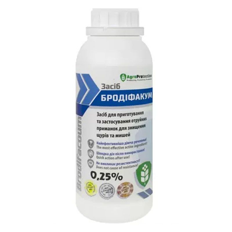 Средство для приготовления приманок Бродифакум 0,25% предназначено для приготовления и применения специалистами отравленных приманок для уничтожения крыс и мышей в практике дератизации на объектах разных категорий.