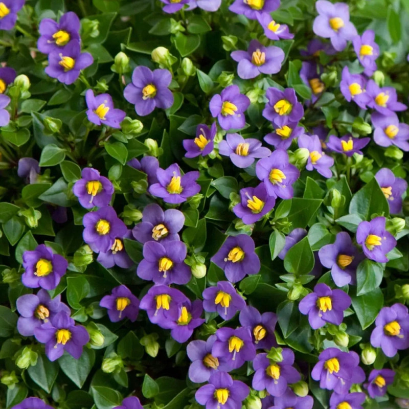 Экзакум Принцесса темно-синяя – декоративное растение с множеством небольших цветов в форме пятиконечной звезды с ярким желтым кругом в центре.
