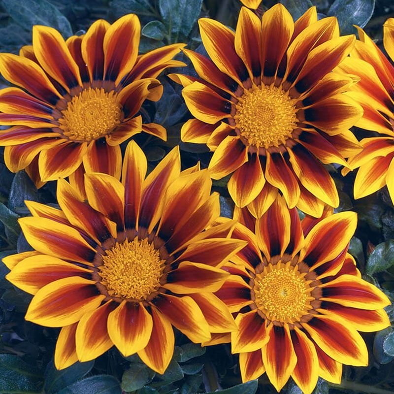 На солнечных клумбах цветы газании Кисс F1 создают незабываемые цветовые акценты.