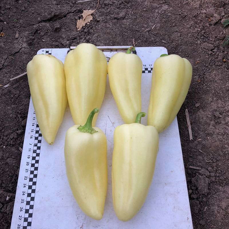 Характеристика плода – Плоды конической формы. Толщина стенки плода – 6 мм. Длина – 14 см, диаметр – 7 см. В технической спелости имеют белый цвет, в биологической спелости – желтый. Вес плода – 130-160 г.
