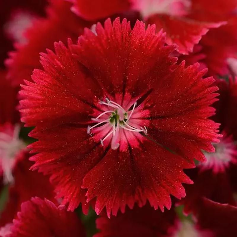 Гвоздика Флорал Лейс F1 (Dianthus chinensis barbatus Floral Lace F1 crimson) – растение с ярко-зелеными листьями.