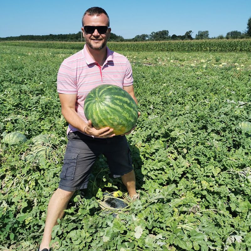 Характеристика плодов – Плоды хорошо покрыты листьями, овальные, большого размера, весом 12-14 кг. Не чувствительны к солнечным ожогам. Хорошее качество, глубоко красная мякоть. Привлекательный внешний вид.