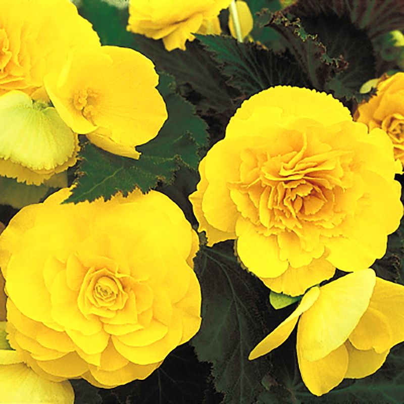 Бегония Нонстоп F1 желтая клубневая махровая (Begonia tuberhybrida Nonstop F1 yellow) – изысканная серия с большими махровыми яркими цветами и зелеными листьями.