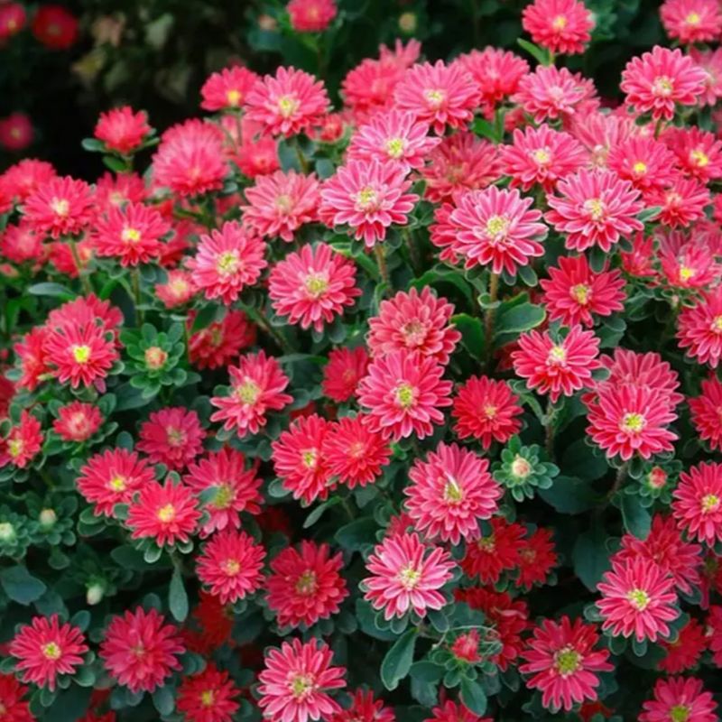 Каждое растение представляет собой отдельный изысканный букет. Формирует крепкий куст высотой 50-60 см с большим количеством (30-40) боковых побегов, покрытых махровыми миниатюрными цветами, диаметром 2,5-3 см. Лепестки располагаются в несколько слоев и пропорционально уменьшаются от наружной части цветка к внутренней. Цветение продолжительное с августа по октябрь.