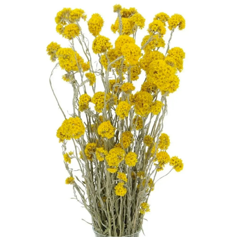 Растение достигает 30-40 сантиметров в высоту. Имеет приподнятые побеги, образующие плотные желтые цветы, произрастающие на верхушке каждого побега.