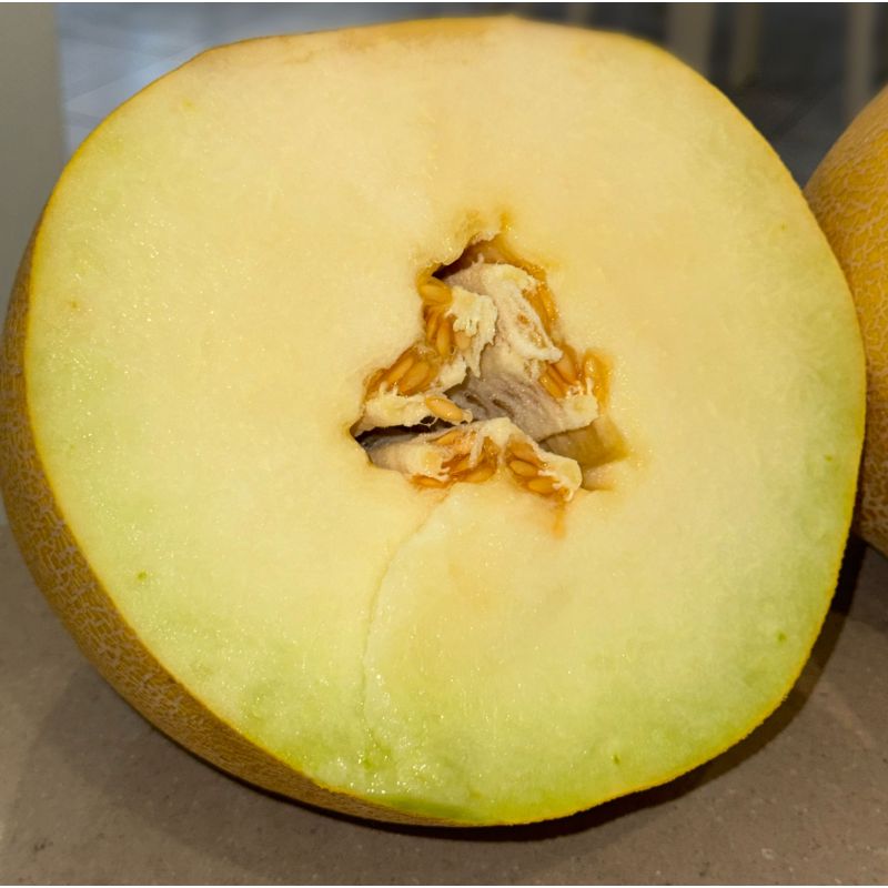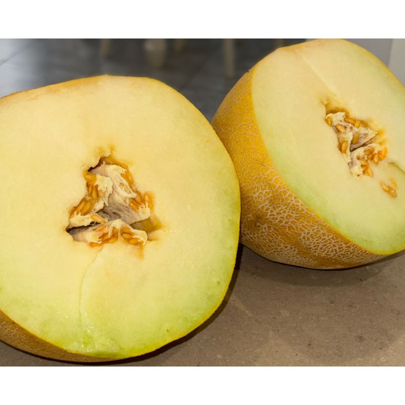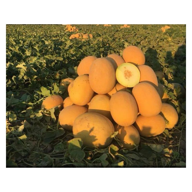 Характеристика плодов – Плоды овальной формы, весом 3-4 кг, очень привлекательные с высокой сахаристостью (13-15%) и хорошим ароматом. Цвет мякоти светлый зелено-кремовый. Цвет кожуры яркий жевто-оранжевый.